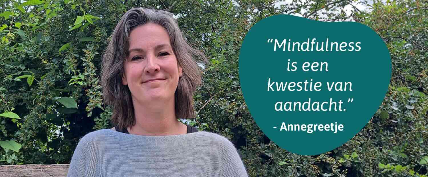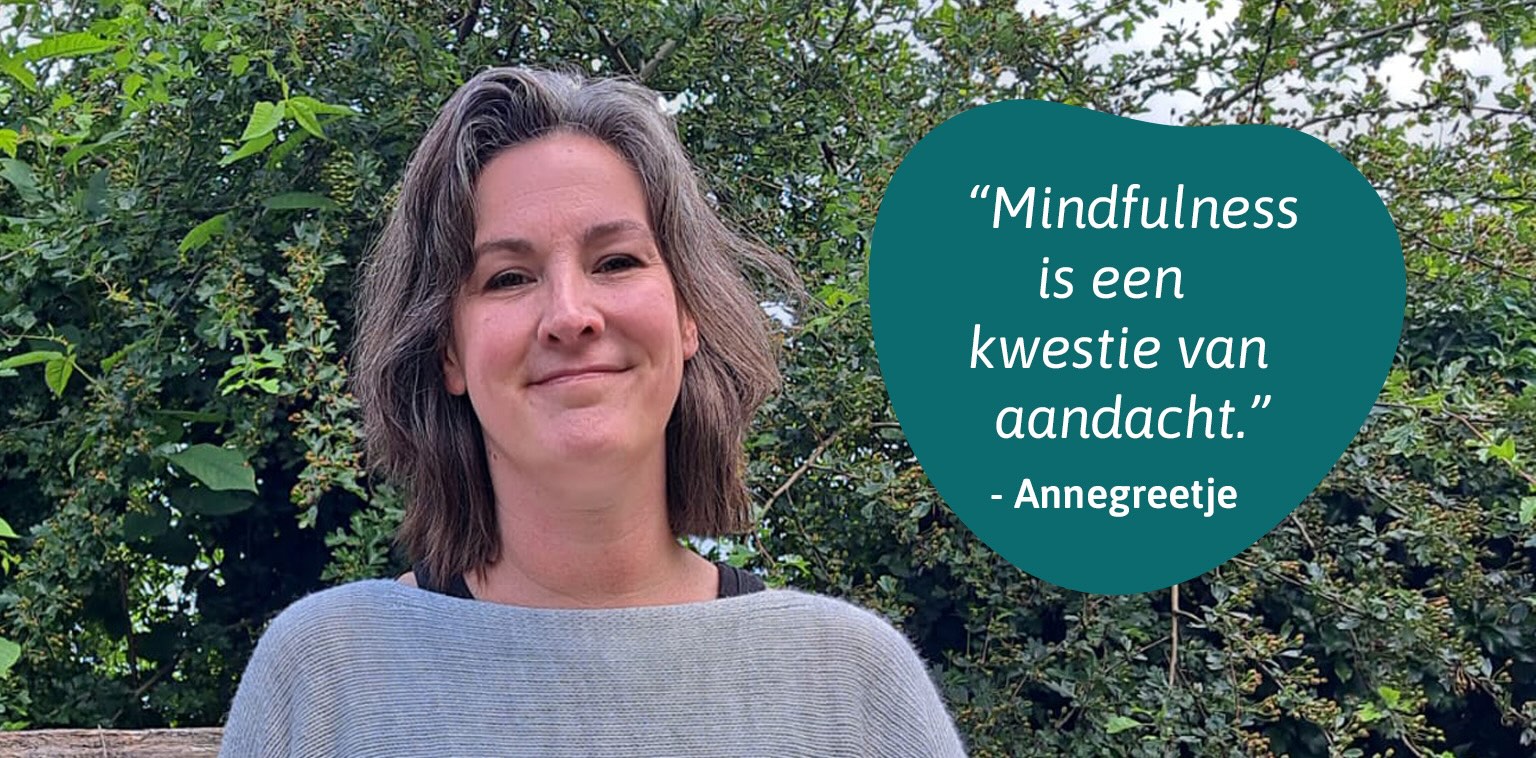 Uit wetenschappelijk onderzoek is gebleken dat mindfulness je hersenen helpt te ontspannen. Je leert met mindfulness meer in met moment te leven, en minder in het verleden of de toekomst. Zo heb je meer tijd om van je dag te genieten. In de alledaagse drukte klinkt dit voor veel mensen misschien niet haalbaar. Dus vroegen we Annegreetje om 1 gouden tip voor als je wil beginnen met mindfulness: