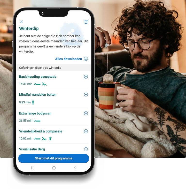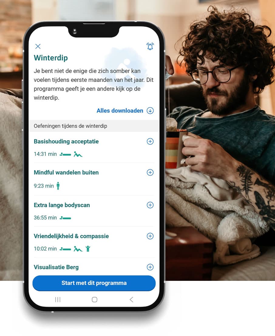 Je bent niet de enige die zich somber voelt in de eerste maanden van het jaar. Maar je kunt er wat aan doen! Met de oefeningen uit de gratis VGZ Mindfulness Coach app. Je hebt geen account nodig, dus ga gelijk aan de slag. Zo kun jij er weer tegenaan.