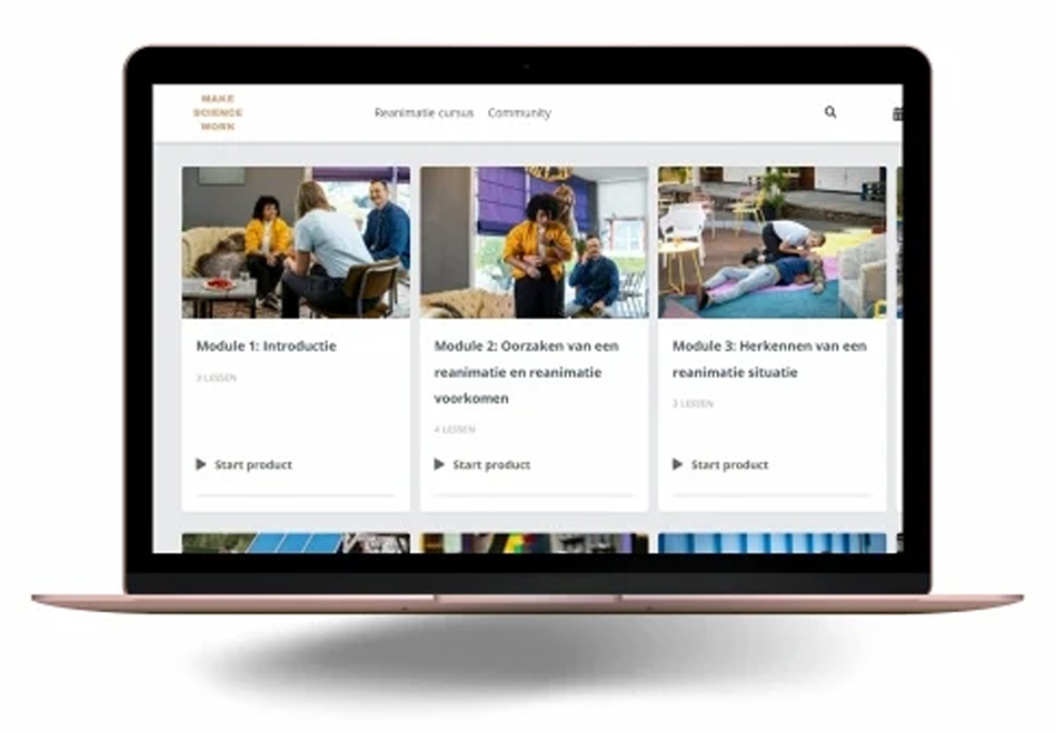 Stel je voor: je staat erbij als iemand neervalt. Jij weet precies wat je moet doen. Dankzij deze cursus. In slechts 1,5 uur leer je online hoe je reanimeert en een AED gebruikt. Zonder tijdsdruk, op je eigen tempo. Je krijgt het vertrouwen dat je iemand echt kunt helpen in noodsituaties.