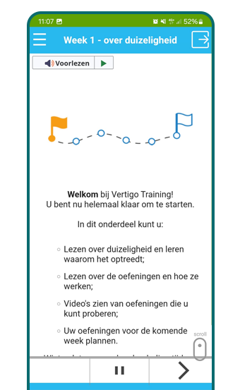 - Wil je geen app gebruiken? Dan kun je de training ook doen via de website Vertigo Training.