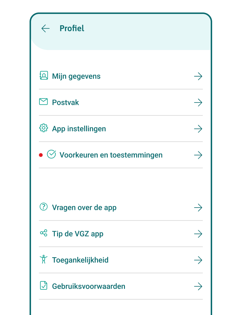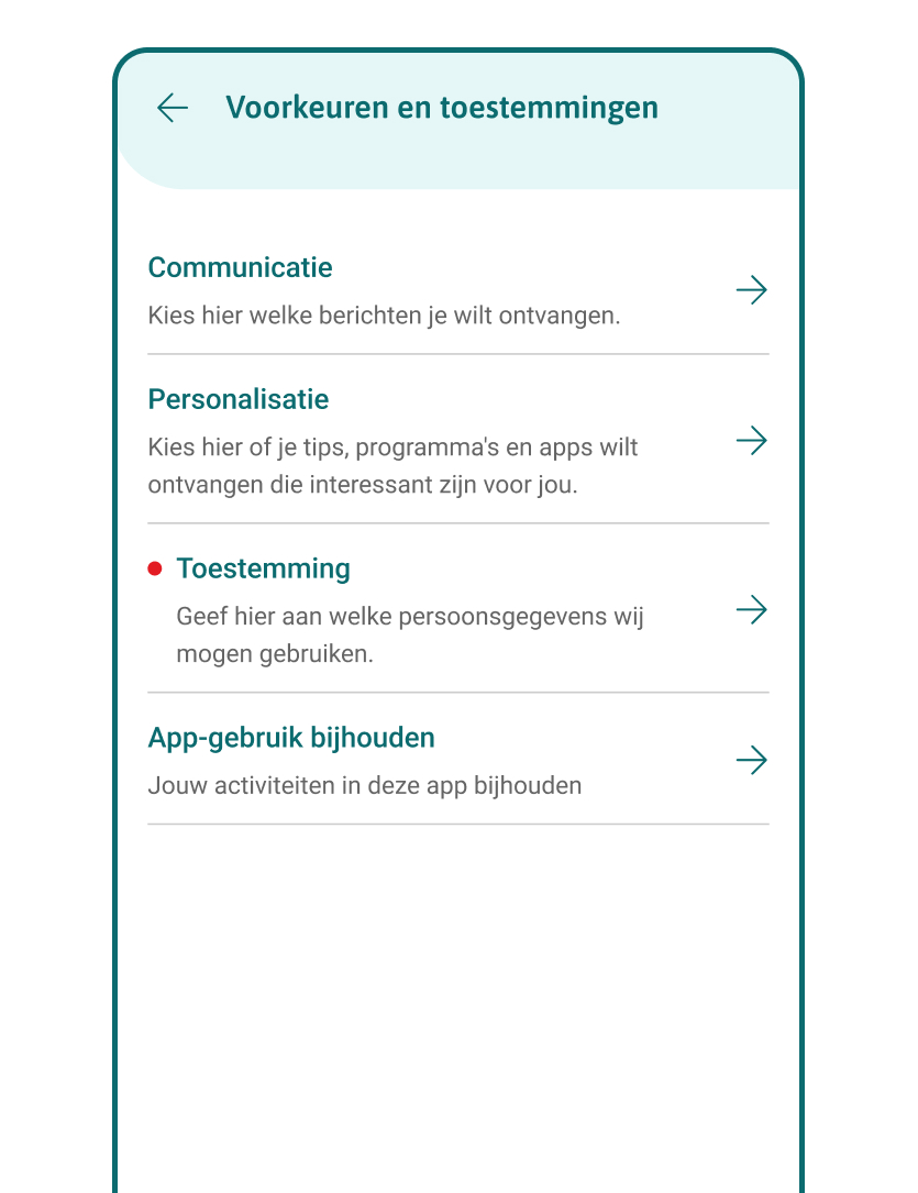 Open de app en klik via je profiel (rechtsboven) op ‘Mijn Toestemmingen’